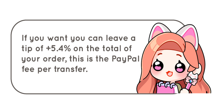 ✦ If you want you can leave a tip of +5.4% on the total of your order, this is the PayPal fee per transfer.